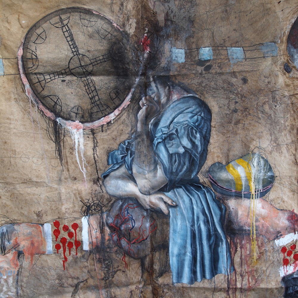 c anthem “Zemecha” oil graphite on cow hide 215cm 192cm