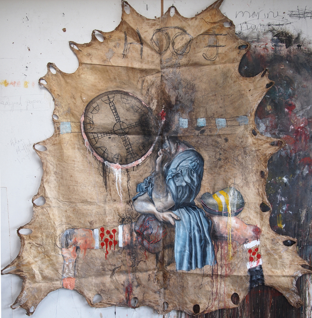 c anthem “Zemecha” oil graphite on cow hide 215cm 192cm