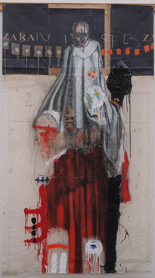 ”Snipe – with the Head of John the Baptist” – oil on dress pattern & Zara bags 200cm x 116cm