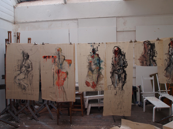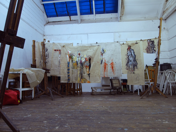 I’ve left D.to string these paintings up high for them to dry. Bunting.