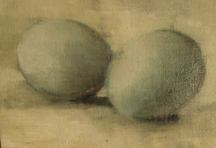 The singularity of the egg. of painting methodically in the late winter afternoons, trying to rest the mind. Shells. Brush. Turps. Damar.