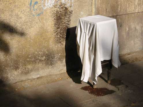 At the time there was a lot of talk about creative street interventions against the ruling order, a couple of Egyptians were organising Critical Mass like bicycle rides. A theater group had all got arrested for doing an impromptu performance deemed “political”. I kind of avoided all that. I think I’d read some Lyotard but art as intervention into public space but I organized my team of shoeshine boys a bit Fagin-like to make these found sculptures, usually with ice that dripped in the midday sun, their excitement and care about the birds, running around finding things, them getting familiar with the aesthetic.