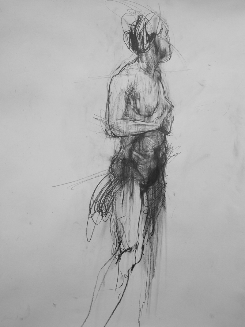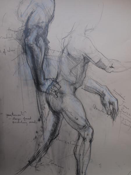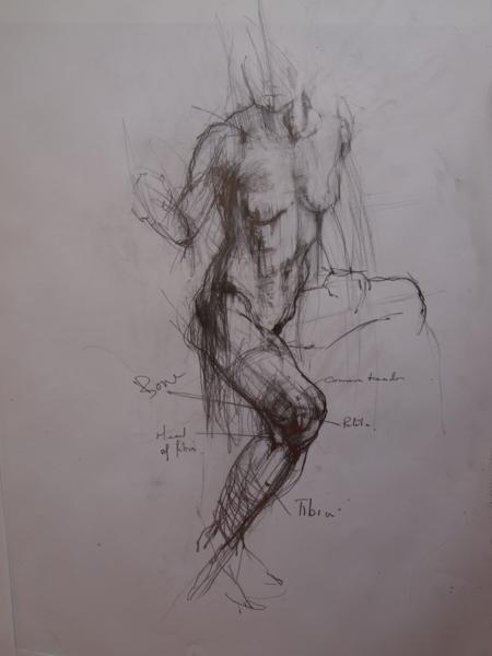 A weeks drawing and study of human anatomy, taught a with the rich knowledge by a Scottish didact. An indulgence to learn, the latin names in his Scots accent. The invaluable guide to the tensions of muscle and bone. Mental and spacial gymnasium for drawing the model…..for pointing, naming, then drawing. George Donald.