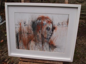 Picked up a drawing that hadn’t sold/wasn’t necessary. A tender, obscured portrait. Gave it to R. An afterthought in the right sense – of a serendipity that fits. The way R. gripped the painting as if she wasn’t going to let it go.